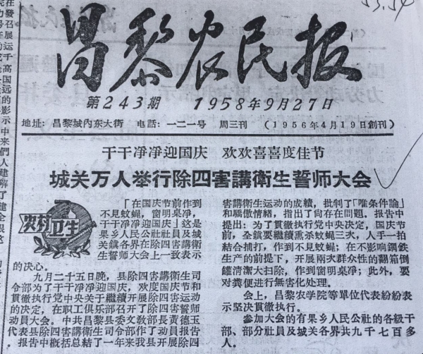 1958年9月,昌黎县宣传报道除“四害”卫生誓师大会