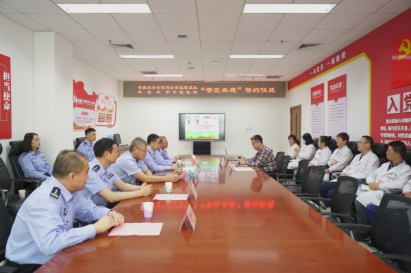 近日,秦皇岛市中医医院与秦皇岛市公安局监所管理支队联合举行了以“中医温馨勤呵护,健康关爱进警营”为主题的“警医共建”签约仪式。市公安局监所管理支队支队长霍文东、市拘留所所长崔成以及市中医医院副院长王红勇和相关科室负责人参加了此次签约仪式。